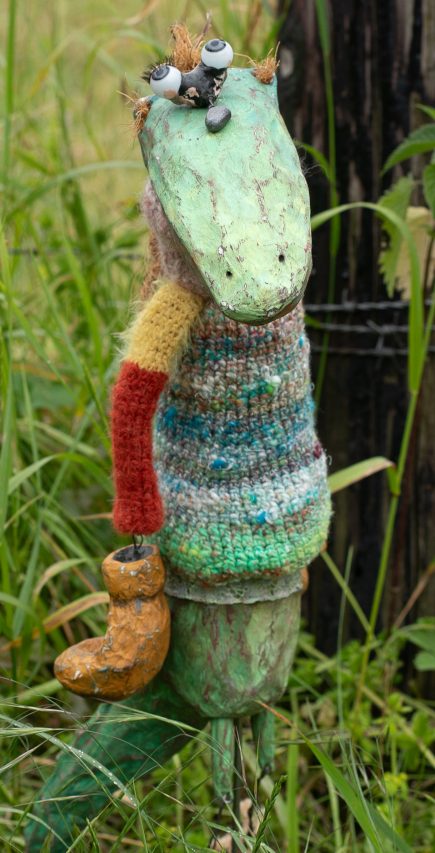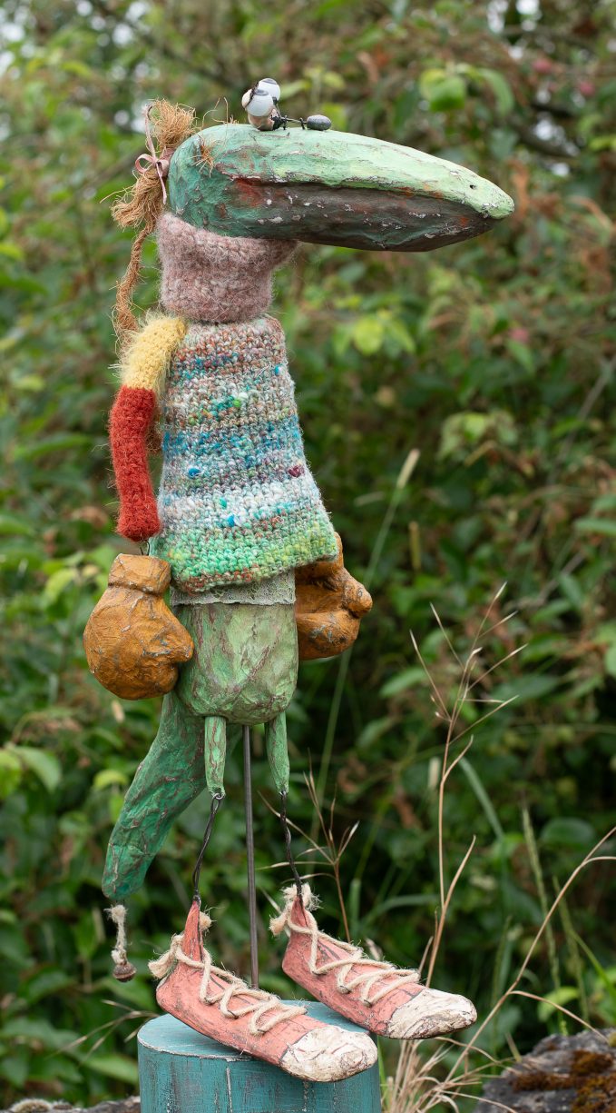 Pappmaché; Wolle; antike Puppenaugen aus Glas...