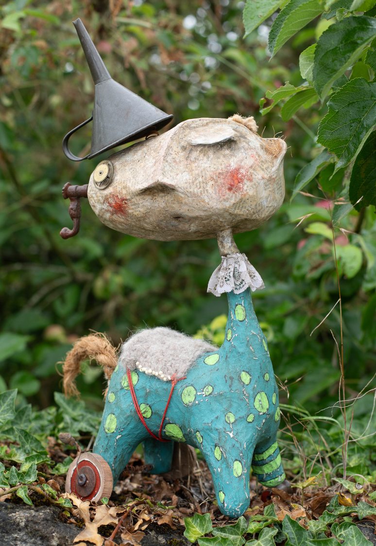 Pappmaché; Wolle; Spitze; Trichter; Holzrädchen; Knöpfe...